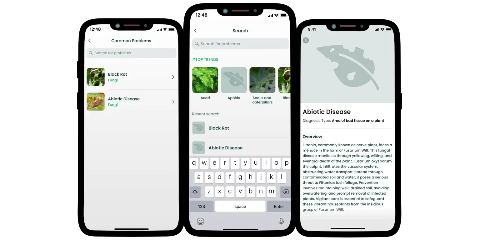- Tailored care tips: watering, light, soil, and temperature guides
